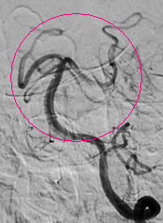 红圈内所示为经动脉接触溶栓后,血管再通。 7月21日上午,在我院神经外科医护人员的团结协作下,成功完成一例急性脑梗塞介入动脉溶栓手术,该项手术的成功开展,使我院急性溶栓技术达到了新的高度,为全市人民带来福音。 患者张大妈,今年77岁,因“晨起洗脸时突发昏迷1个小时”急诊送入我院,行头颅CT示:排除脑出血、脑梗塞可能。神经外一科9:40接急诊内科紧急会诊通知,王和平医生9:45赶到急诊内科,在了解了病人的一般情况后,考虑患者来院比较及时,还在动脉溶栓时间窗内,遂急诊介入行全脑血管造影,明确为基底动脉完全闭塞(此病致死率高达90%),继而予尿激酶行基底动脉内接触溶栓!之后行造影明确,基底动脉通畅、显影(造影图片见后)!当天下午,患者神志基本清醒,竟然向医生提出要求:要求回家给儿孙做饭。 急性脑梗塞,超早期(起病3小时内)的静脉溶栓治疗是传统的药物治疗,称为“黄金三小时”。但绝大多数患者在该时间段内来不到医院,或是到了医院还来不及明确诊断。但动脉溶栓可将该时间段延长至6-8小时(前循环),后循环血管闭塞甚至可延长到24小时。并且,动脉溶栓目的性更强(直接将溶栓药物灌注在血栓上),全身副反应更小,效果更好。这样就为本类患者的救治提供了机会! 随着2012年我院成为国家卫计委的脑卒中筛查与防治基地,我院对脑卒中的诊断与治疗水平有了进一步的提高。尤其是2013年新型飞利浦数字血管减影机投入临床使用,神经外一科的脑血管介入治疗水平又有了质的飞跃。目前神经外一科常年开展的脑血管病业务有:脑动脉、颈动脉狭窄支架成形术、脑动静脉畸形栓塞术、脑动脉瘤栓塞术、颈内动脉-海绵窦瘘球囊封堵术、急性脑梗塞动脉溶栓术、急性脑梗塞动脉取栓术。 脑卒中防治知识链接:脑卒中非常凶险,像斯大林、丘吉尔这样的名人就是死于脑卒中。如今脑卒中成为了我国人民群众生命健康的“第一杀手”,引起了我国患者与医生的关注。脑卒中即人们常说的“中风”,是严重威胁人类生命健康的常见病。其特点是突然起病,出现脑部功能受损的症状。病人出现肢体瘫痪、感觉异常、语言障碍甚至昏迷、死亡,其致残率和死亡率都非常高。 脑卒中分为两大类:一是脑血管破裂出血,通常称为“脑溢血”,如高血压脑出血、蛛网膜下腔出血等;另一类为血管闭塞导致脑缺血、脑组织坏死,即通常所说的“脑梗塞”。目前脑梗死是我国最常见的卒中类型,占70%以上。(王和平) |