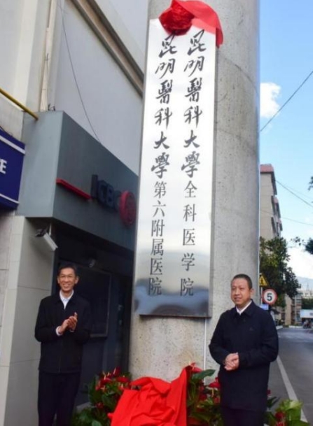 昆明医科大学校长夏雪山、玉溪市政府副市长陈建军共同为昆明医科大学全科医学院揭牌。
