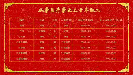 医院全体党政领导班子为2023年度杰出医护技人员、从医或来院工作30年人员职工颁发了奖状和证书。